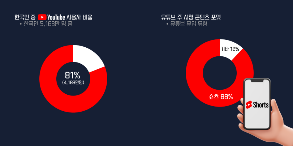 특히나 쇼츠 같은 경우에는 하루 평균 조회 수가 약 300억으로 시장 규모가 점점 더 커지고 있어 마케팅 요소로 활용하기 제격입니다.